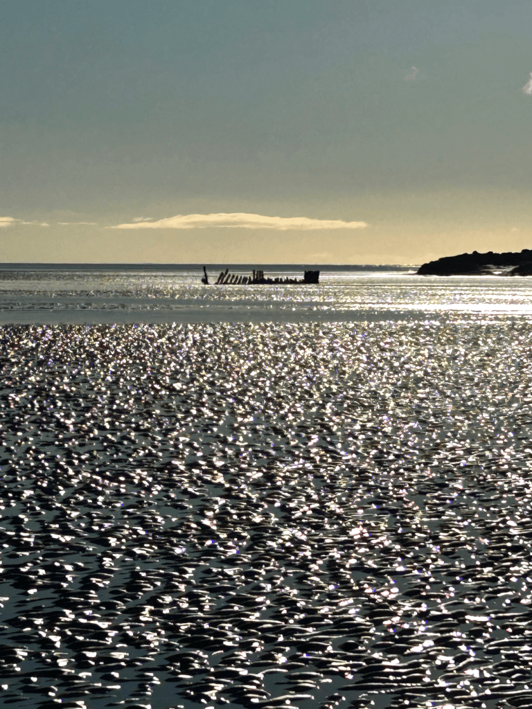 On Monday, I made the decision to go paddling through some icy sea water. For I was at a local beach where if the tide is out, you can see a wreck, and if it is at low tide, it’s possible to walk out to that wreck.