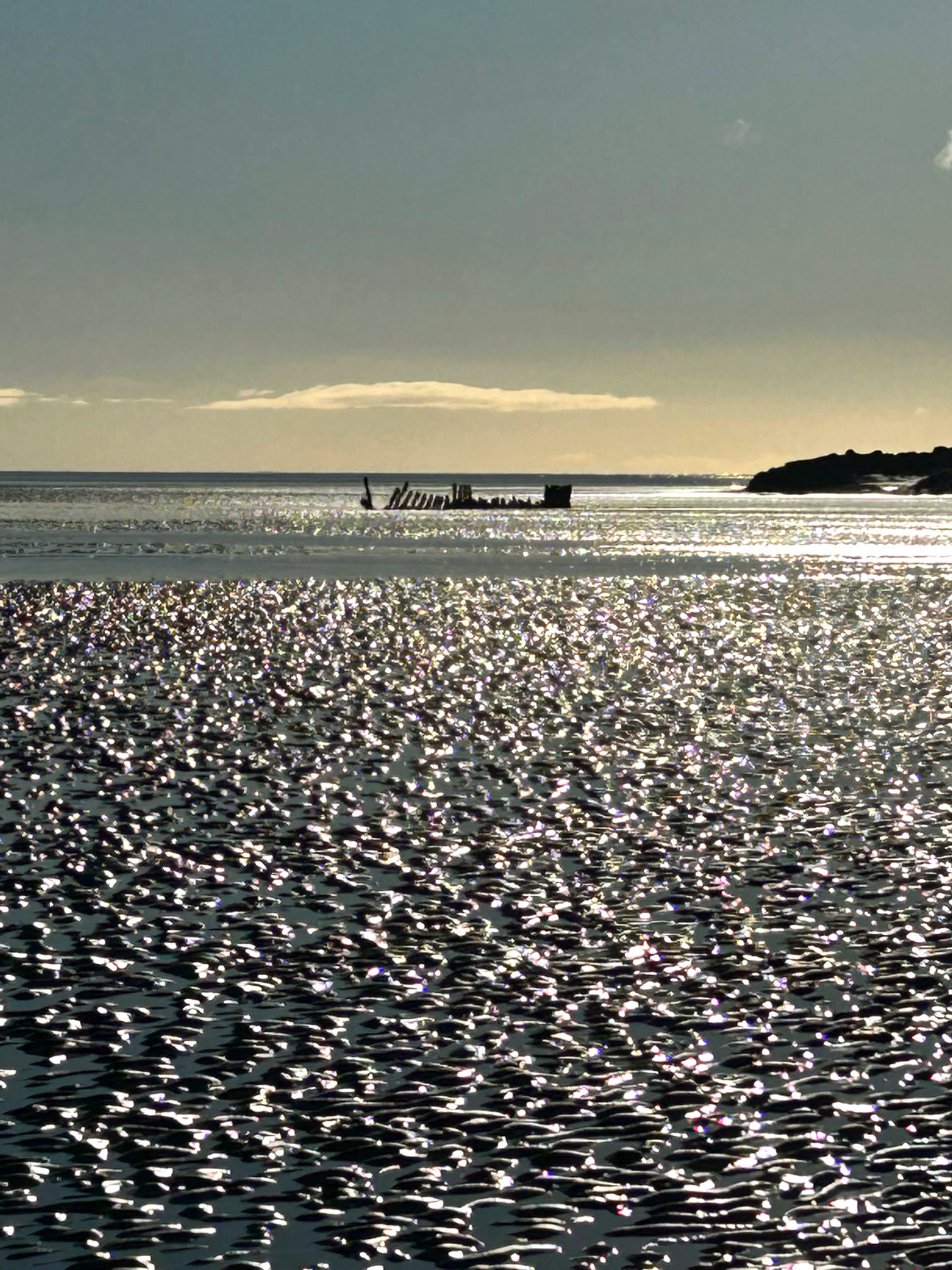 On Monday, I made the decision to go paddling through some icy sea water. For I was at a local beach where if the tide is out, you can see a wreck, and if it is at low tide, it’s possible to walk out to that wreck.